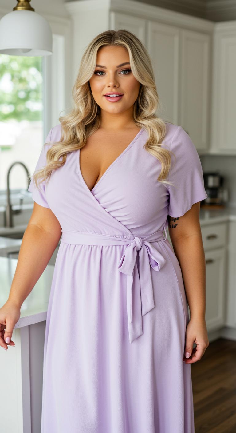 Perfect for a casual brunch or an afternoon garden party, this lavender midi dress offers effortless charm. The soft, flowing fabric and flattering wrap silhouette, complete with a self-tie waist, create an adaptable and comfortable fit. Its gentle V-neckline and short sleeves make it suitable for various body types, particularly complementing those who appreciate a defined waist and relaxed elegance. The serene pastel hue ensures a fresh and approachable aesthetic for spring and summer outings.