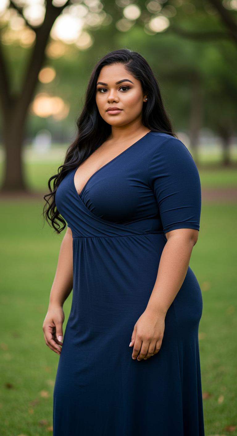 The deep navy hue of this maxi dress exudes a sophisticated yet relaxed charm, making it a versatile wardrobe staple. Its flattering V-neckline and empire waist, cinched just below the bust, effortlessly highlight the décolletage and create an elegant silhouette. This piece gracefully complements various body types, particularly pear and hourglass figures, by drawing attention upwards and flowing softly over the hips. Ideal for casual daytime events or an intimate evening gathering, the dress offers both comfort and understated style.