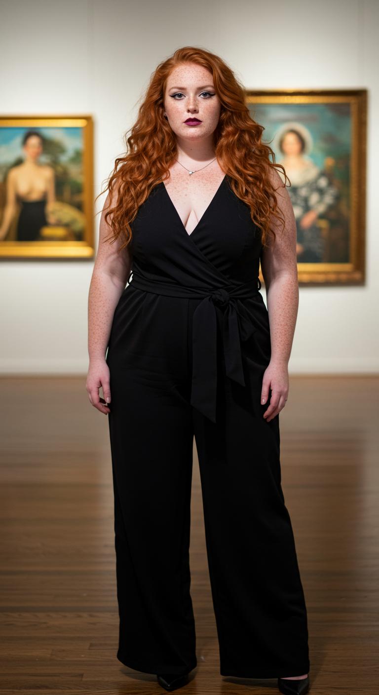 Perfect for a cooler evening, this sophisticated black jumpsuit offers a sleek and polished choice for various formal or semi-formal events. The deep V-neckline and wide-leg silhouette create an elongating effect, while the cinched waist with a self-tie belt flatters the figure, making it suitable for hourglass or pear body types. Its classic color and refined design make it an ideal option for gallery openings, upscale dinners, or a chic night out, providing both comfort and undeniable style.