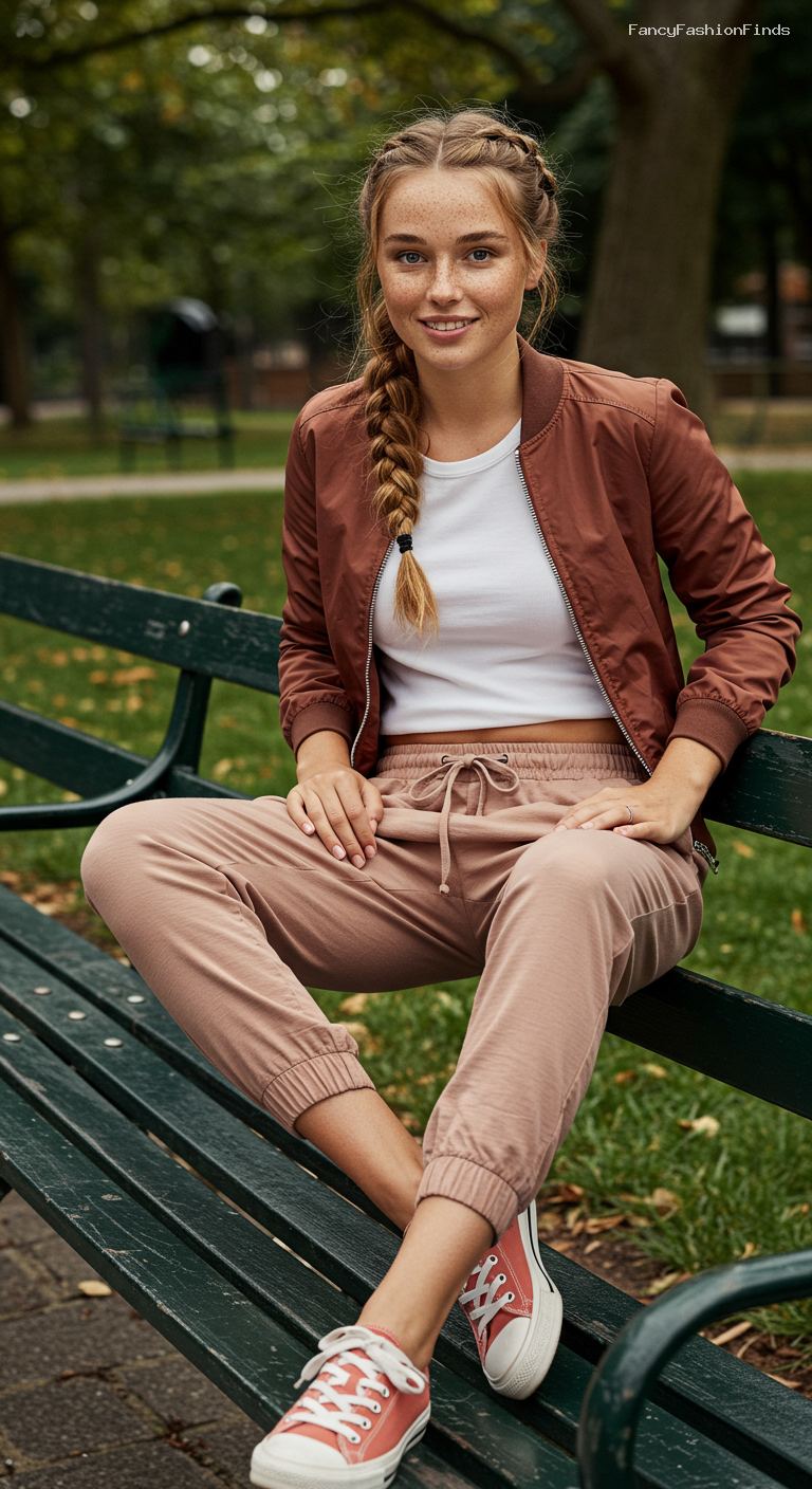The subtle crop of the dusty rose hoodie, paired with high-waisted black leggings, creates a balanced and comfortable silhouette. This combination offers a relaxed yet put-together aesthetic, ideal for various body types seeking both style and ease. The soft pink hue of the top provides a gentle contrast to the dark leggings, making it suitable for casual outings, light workouts, or relaxed weekends. It’s a versatile look for those who appreciate understated athleisure.