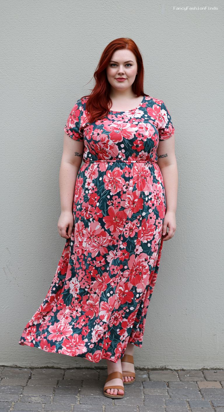 The vibrant floral print, featuring rich crimson and soft pink blossoms against a deep teal background, immediately catches the eye in this flowing maxi dress. Its elasticated waist creates a flattering silhouette that gracefully skims the body, offering comfort and style. This versatile piece is ideal for pear and hourglass figures, enhancing curves without clinging, and perfect for casual outings, garden parties, or relaxed brunches.